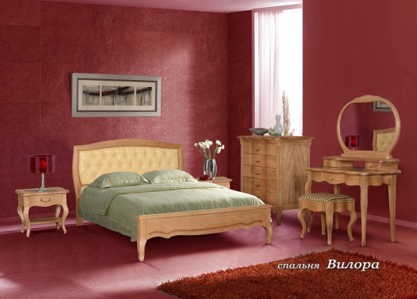 Изящная кровать из массива дерева с кожанной отделкой изголовья.